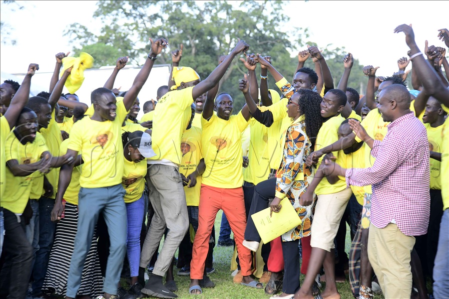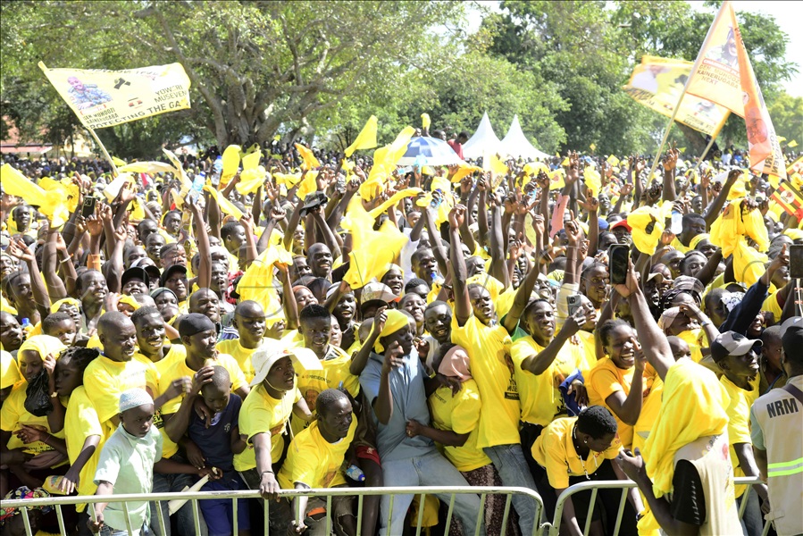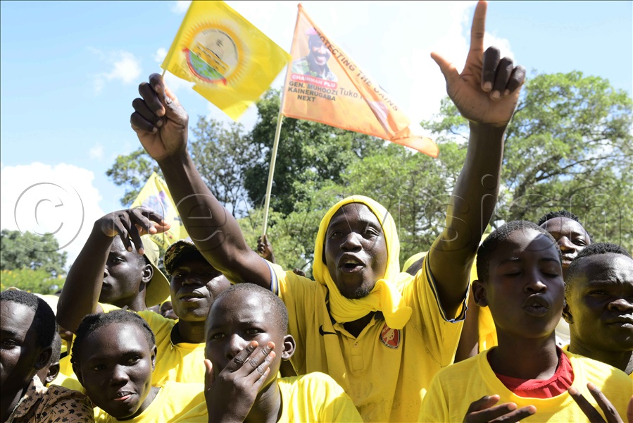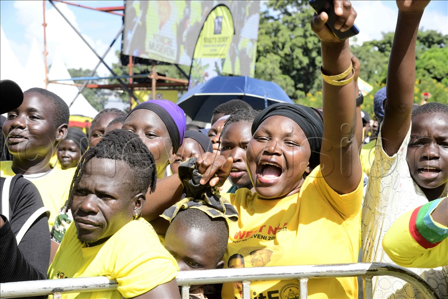 Jubilant NRM supporters cheer President Yoweri Museveni.