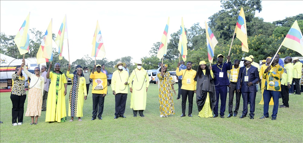 President Yoweri Museveni with the NRM flag bearers for Arua district and Arua City at Arua Gold course.