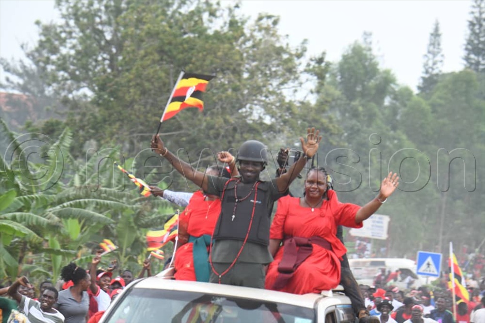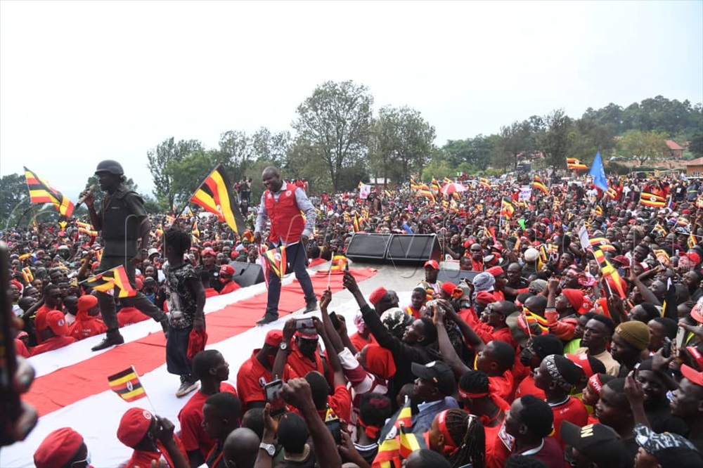 National Unity Platform presidential flag bearer Robert Kyagulanyi Ssentamu waving to his supporters. (Photos by Ponsiano Nsimbi)