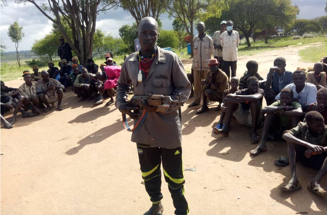A Local Defence Force (LDU) deserter handing in over his AK47 to the UPDF in September 2021 before the community of Dodoth. Courtesy Photo