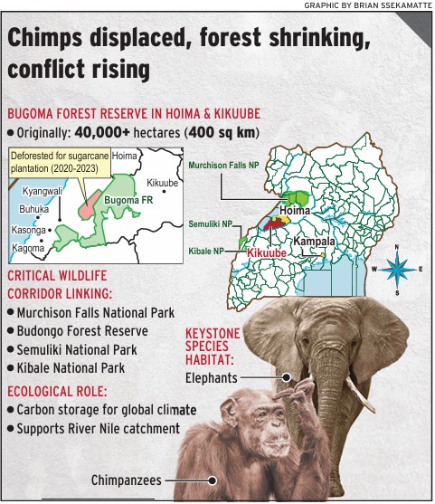 The chimpanzees in Bugoma Forest Reserve are suffering as ongoing destruction takes a toll on wildlife, threatening both tourism and local communities.