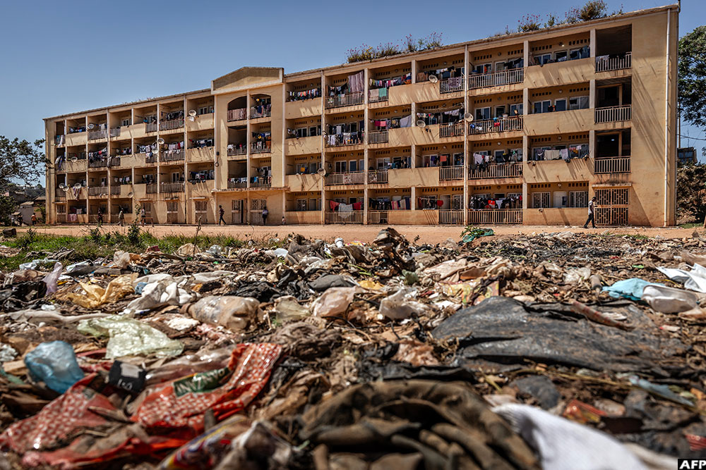 There is also only one working shower for eight residents. The shared toilet does not flush, so students clear it by filling buckets in the courtyard, where the sounds of French rapper MHD echo.