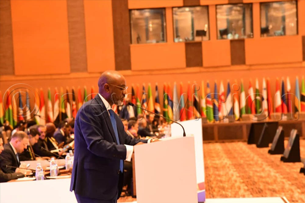 This picture, taken on Monday, January 15, 2024, shows Uganda’s permanent representative to the United Nations chairing the NAM Summit at Munyonyo Commonwealth Resort Hotel. (Credit: Eddie Ssejjoba)