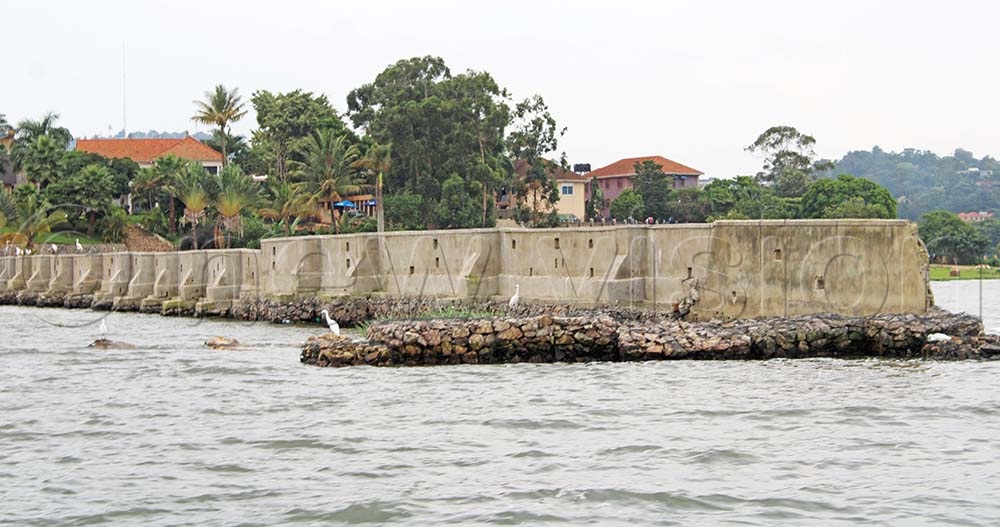 A perimeter wall of Ddungu Beach. Some authorities allege that Ddungu has enclosed part of the lake with large and extensive barricades with the aim of converting it into a private beach. (Credit: Ibrahim Ruhweza)