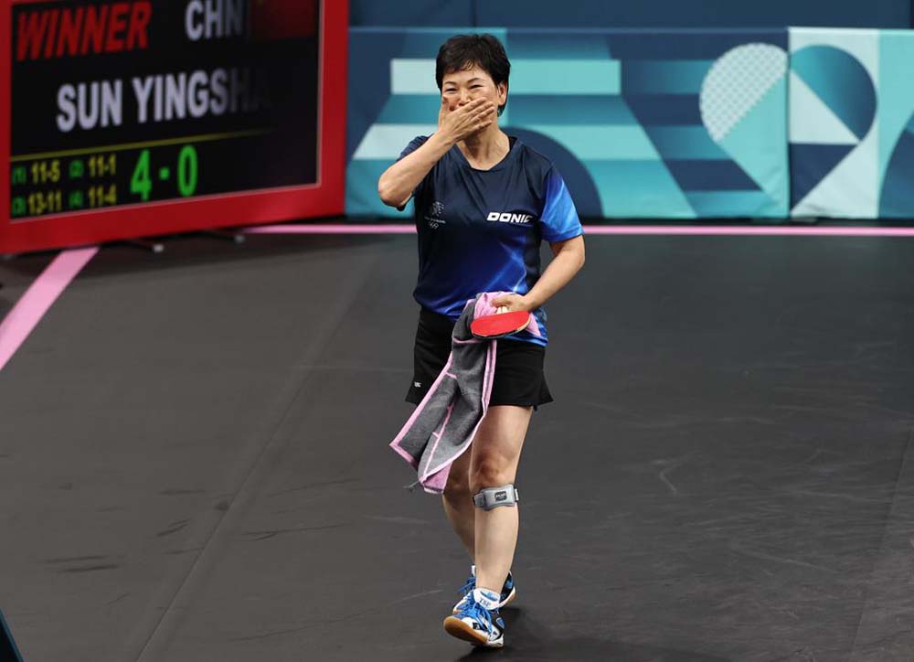 Ni Xia Lian of Luxembourg is overcome with emotion after her women's singles round of 32 match against Sun Yingsha of China at the 2024 Olympic Games in Paris, France, on July 31, 2024. (Credit: Xinhua)