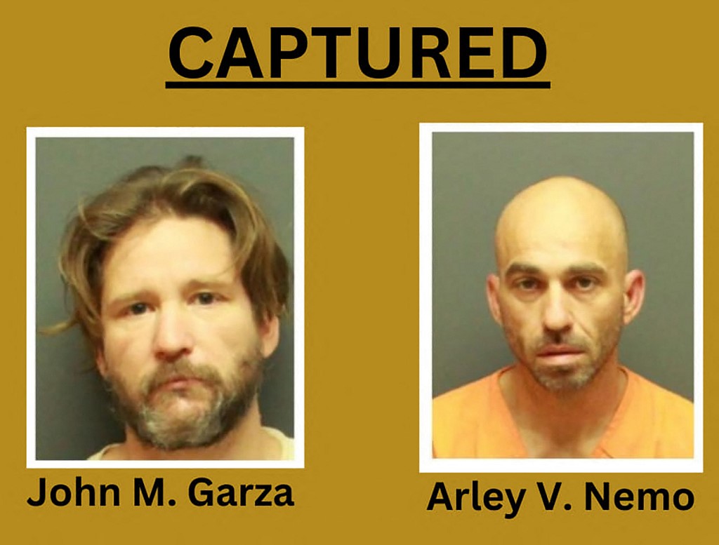 This image released by the Newport News Sheriff's Office, shows a Captured poster with escaped inmates John Garza and Arley Nemo /AFP