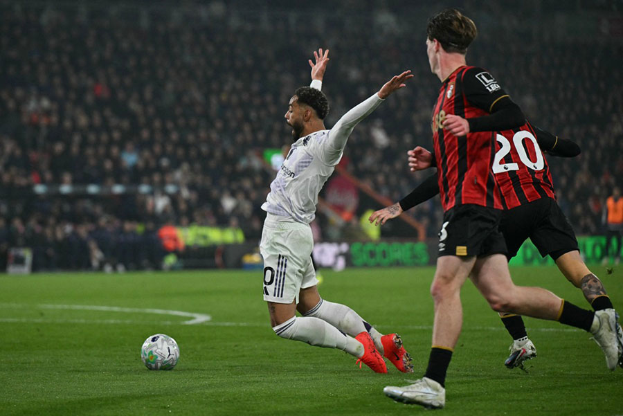 United took the lead from the spot through Bruno Fernandes but were denied a second penalty when Amad Diallo went down inside the box under a challenge from Adrien Truffert.