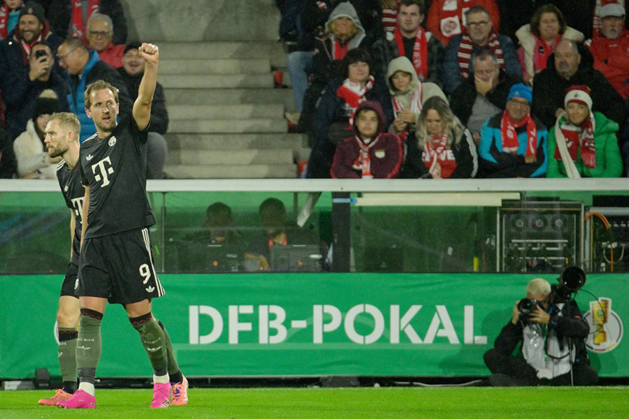 Harry Kane grabbed a double as Bayern Munich set a European record of 14 successive victories to start a season with their 4-1 win at Cologne in the German Cup second round on Wednesday.