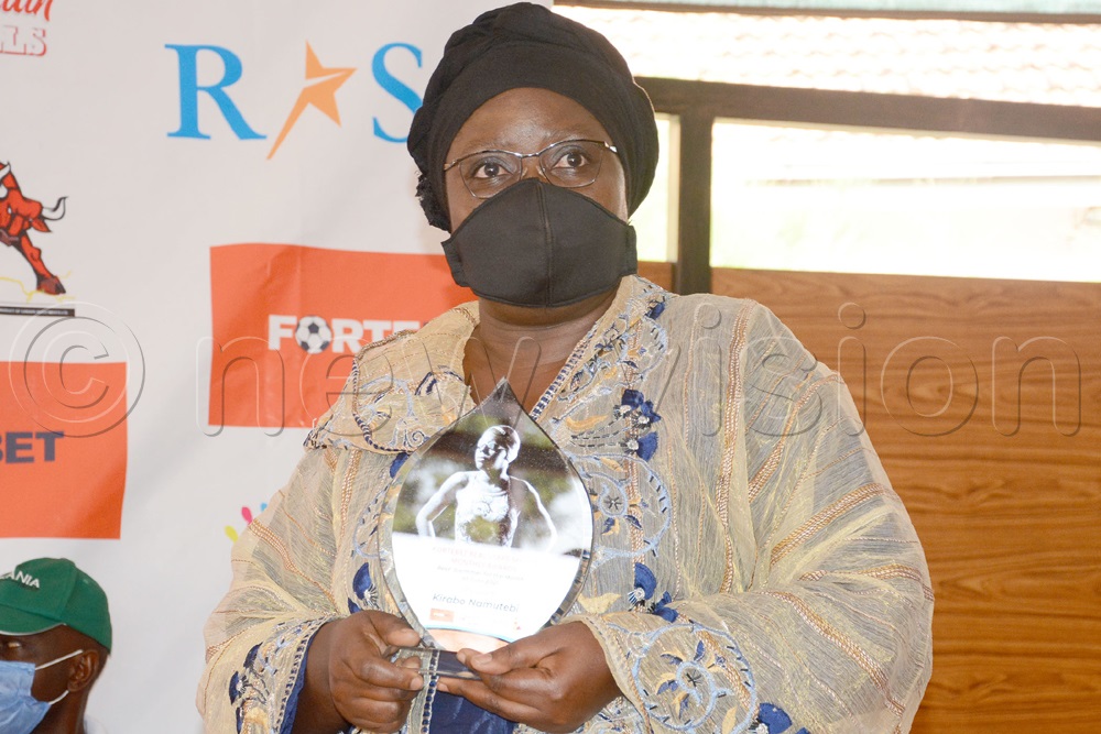 Hadijah Namanda poses with daughter Kirabo Namutebi's award at Route 256. Photo by Michael Nsubuga