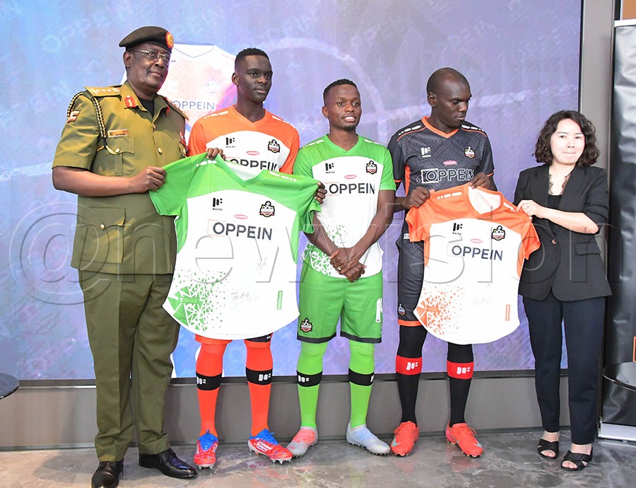 Lt. Gen. Mugira officially unveiled the new NEC FC kit, which now bears OPPEIN as the front-chest main sponsor for an unspecified period, according to Eng. Buhanda and OPPEIN Managing Director Sherry Shi, also known as Namutebi.