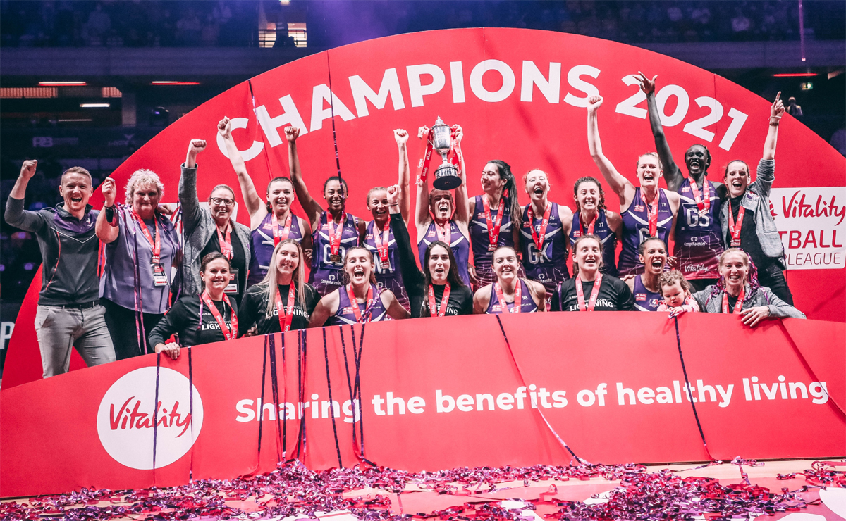 Mary Nuba inspired Loughborough Lightning to their first Vitality Netball Superleague title in 16 years with a 49-32 win over Team Bath at the Copper Box Arena on Sunday night.