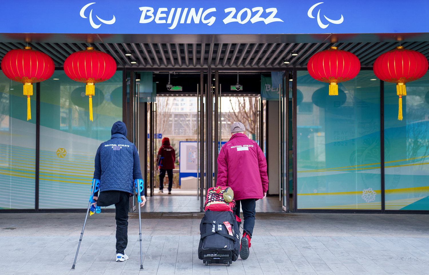 Neutral athletes with re-branded clothing arriving at the Paralympic Village with some tape covering the word 'Russia' on the back of an athlete's jacket. AFP Photo