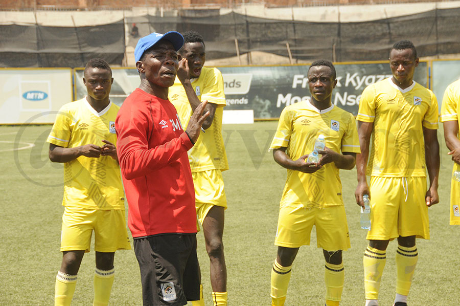 U-20 team coach Jackson Mayanja briefing players at Lugogo Phillip Omondi Stadium after a friendly against Bright Stars. ALL PHOTOS by Silvano Kibuuka
