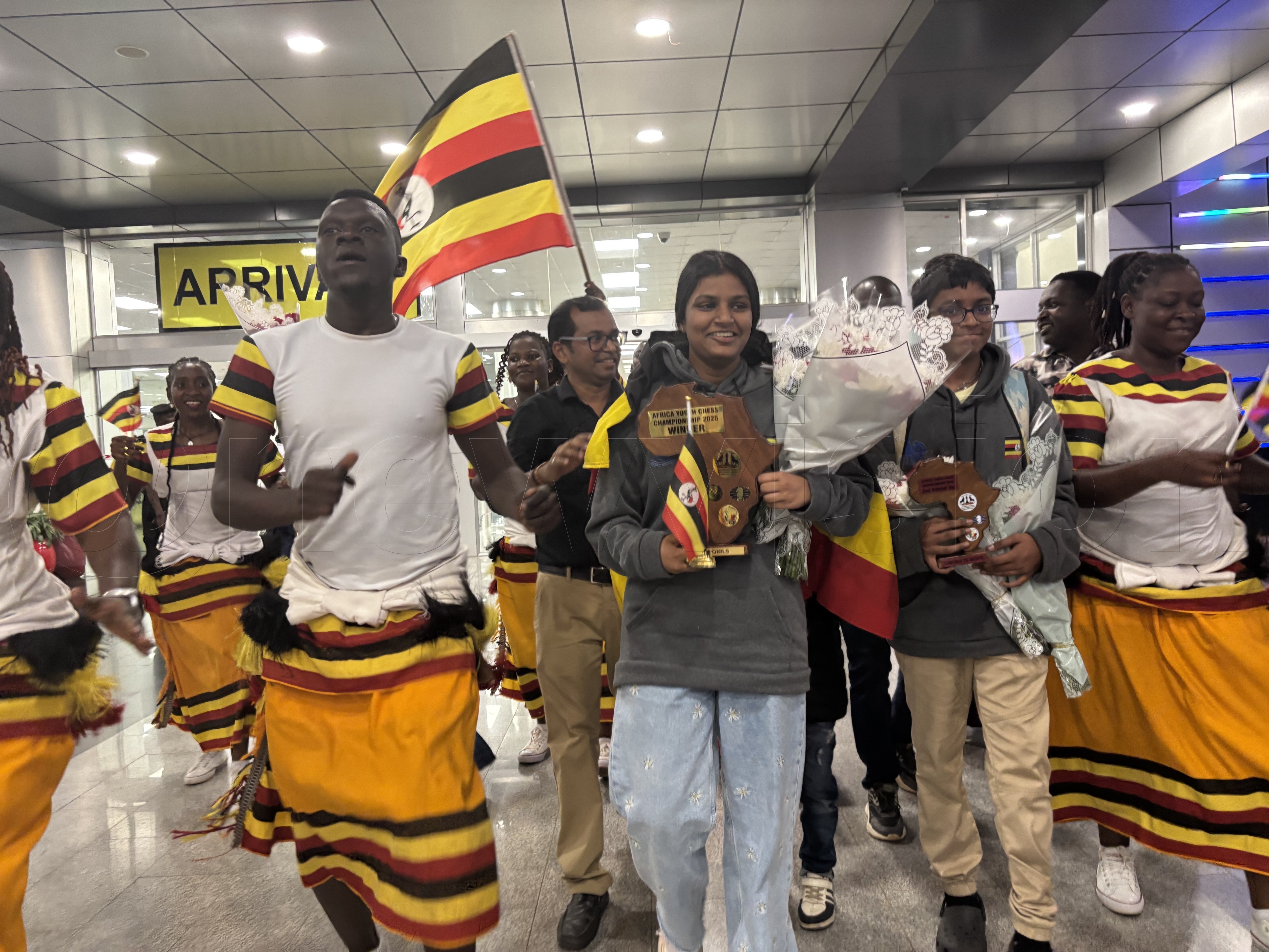 Celebrations erupted at the airport as officials from the Uganda Chess Federation (UCF), led by incoming Secretary for Women’s Affairs Victoria Nakiirya, joined Sana’s family and members of the local chess fraternity to welcome the champions.