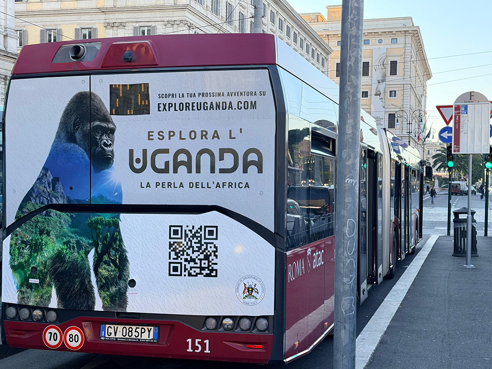 Uganda has launched a new tourism marketing campaign in Italy, placing striking images of its wildlife and natural attractions on public buses across major cities in a move aimed at reaching an estimated 10 million potential tourists.