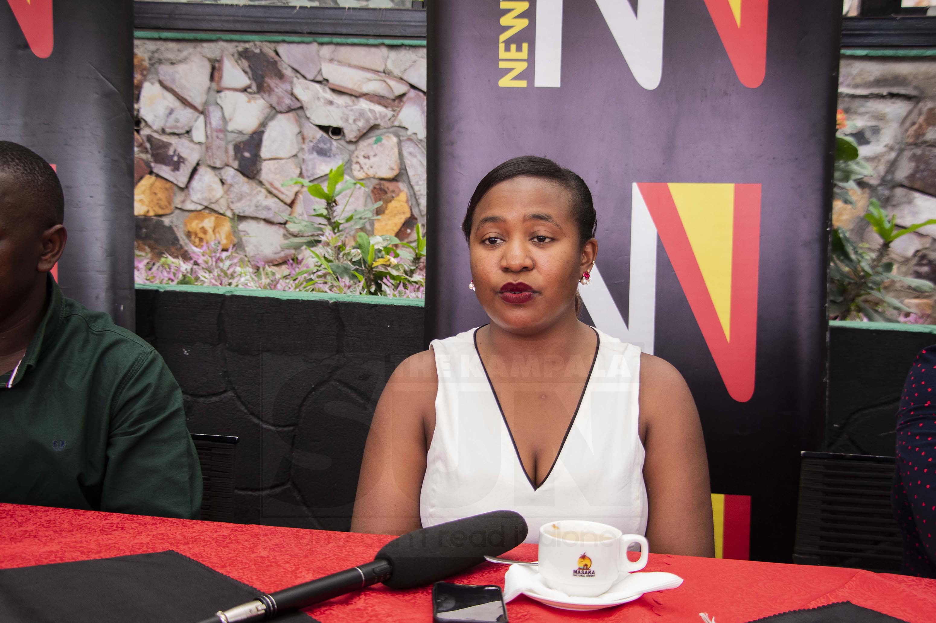 Lorraine Tukahirwe, head of marketing and communications at Vision Group, addressing journalists during the launching of 'Valentines in Paradise' promotion at Masaka Cultural Resort on Tuesday, February 6, 2024. Photo by Ivan Kabuye