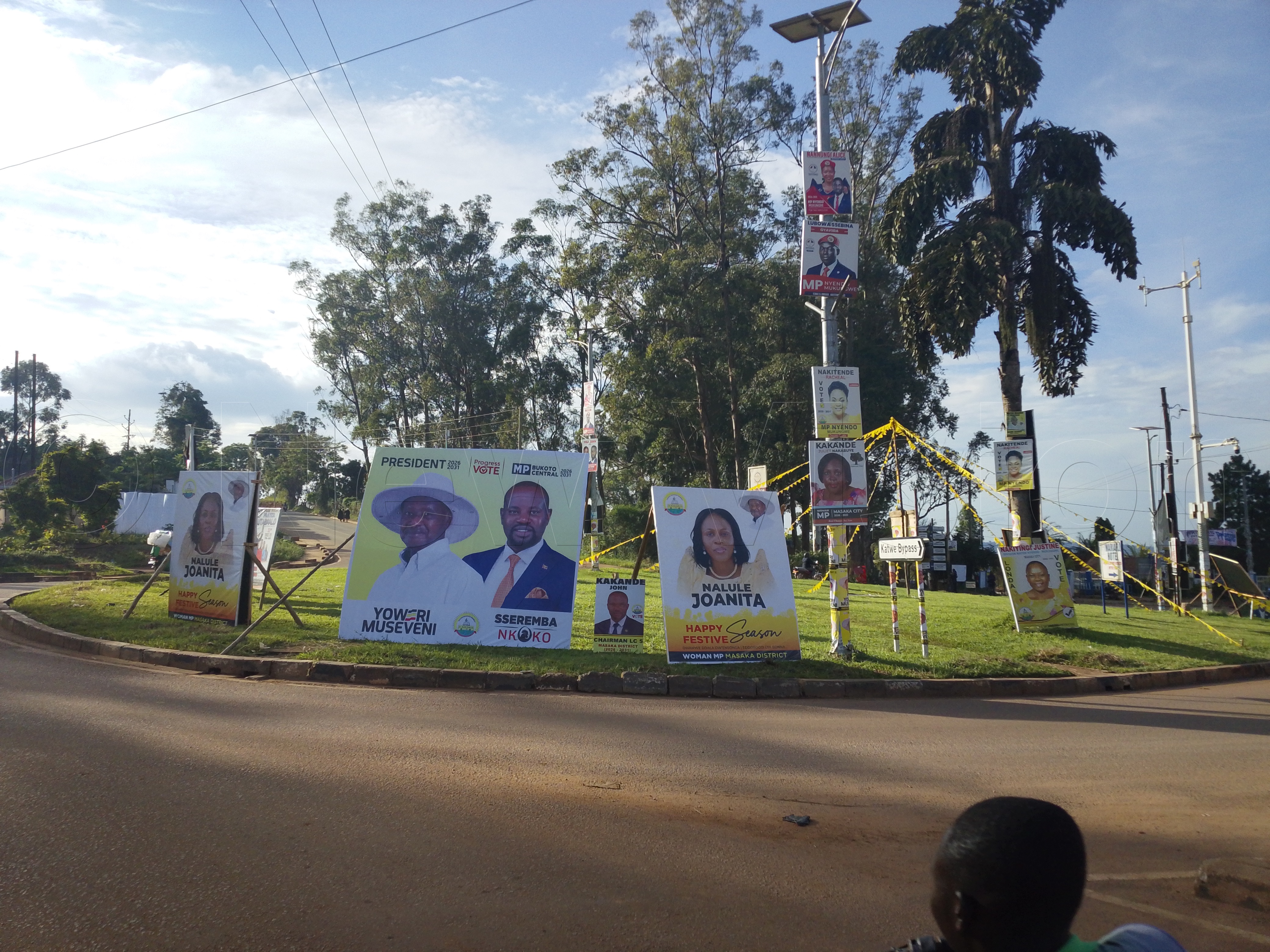There are dozens of giant campaign billboards showing Museveni’s smiling face on the highway and on the streets of the city.
