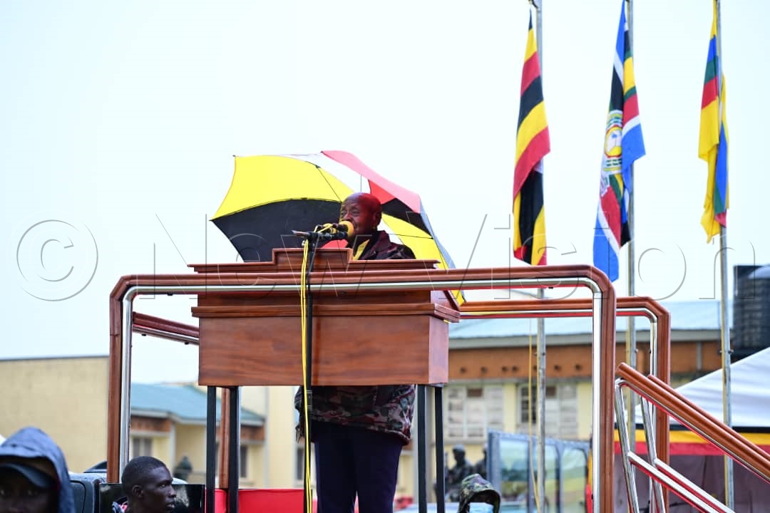 At a Buikwe rally, President Museveni said the minimum wage will come after lowering production costs, citing efforts to secure peace, expand markets, cut electricity, transport and loan costs, and he ordered clarification of land rights to prevent exploitation.