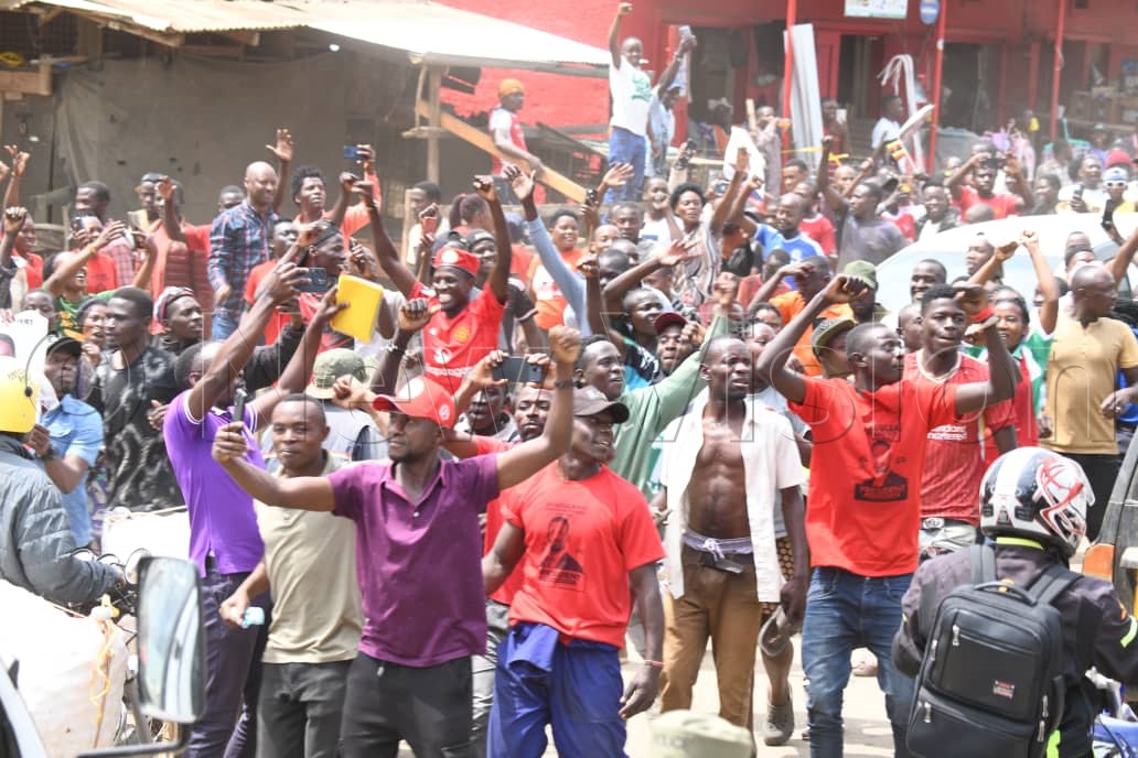 FDC presidential candidate Nathan Nandala Mafabi with FDC supporters.