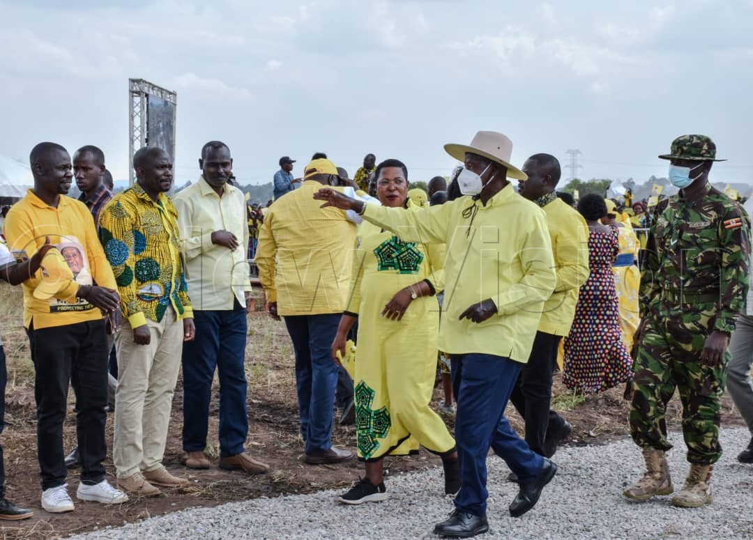 President Museveni waving to enthusiastic NRM supporters. (Credit: Simon Peter Tumwine)