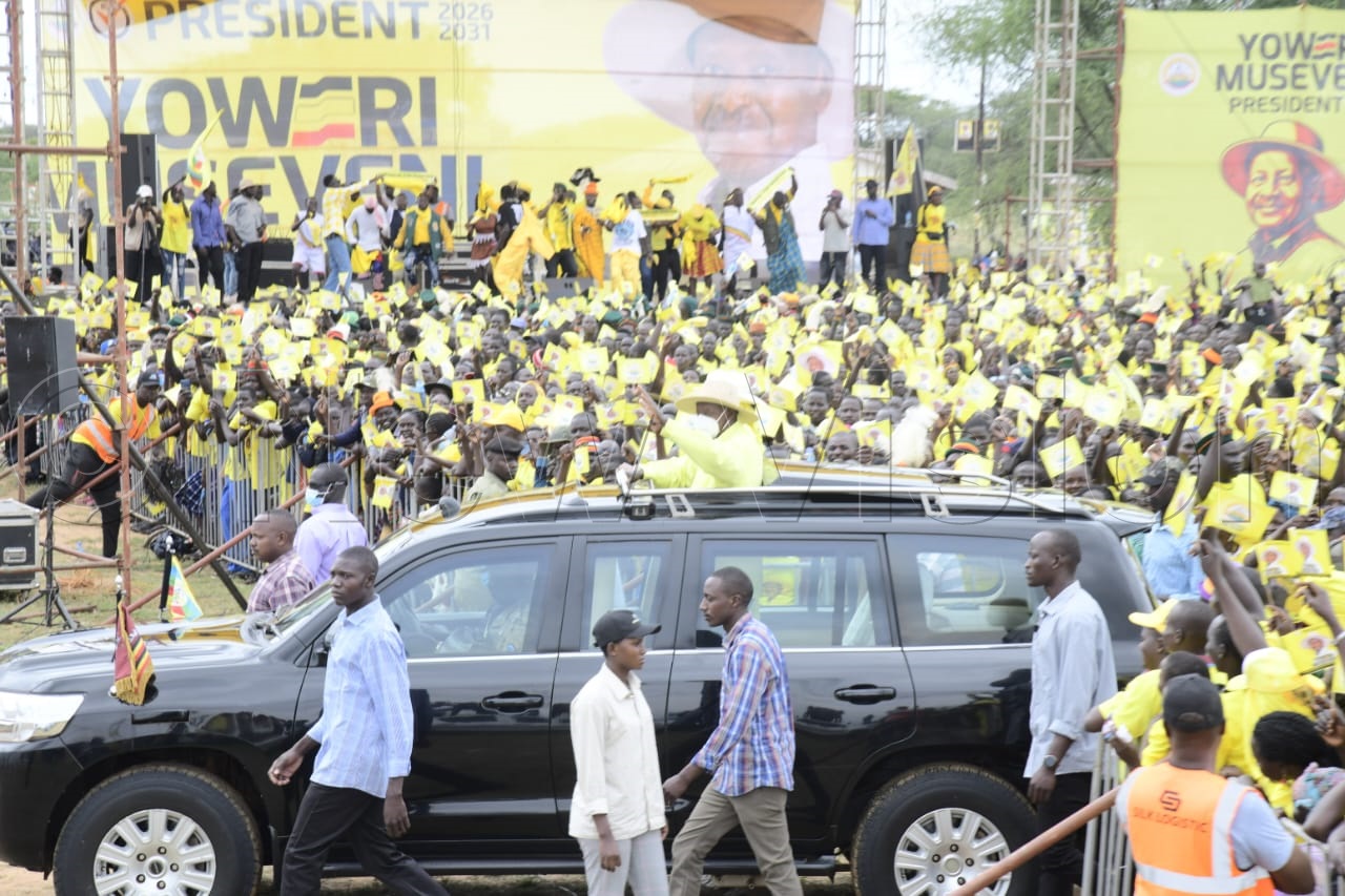 Just as it has been with all NRM rallies, there's entertainment for the cheering supporters as they wait for the president to come to the campaign rally grounds.
