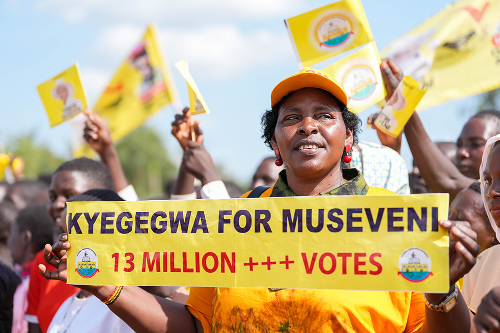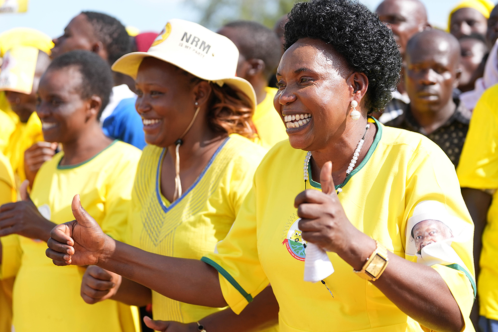 President Museveni arrives for the campaign rally amidst cheers from the NRM supporters. (PPU)