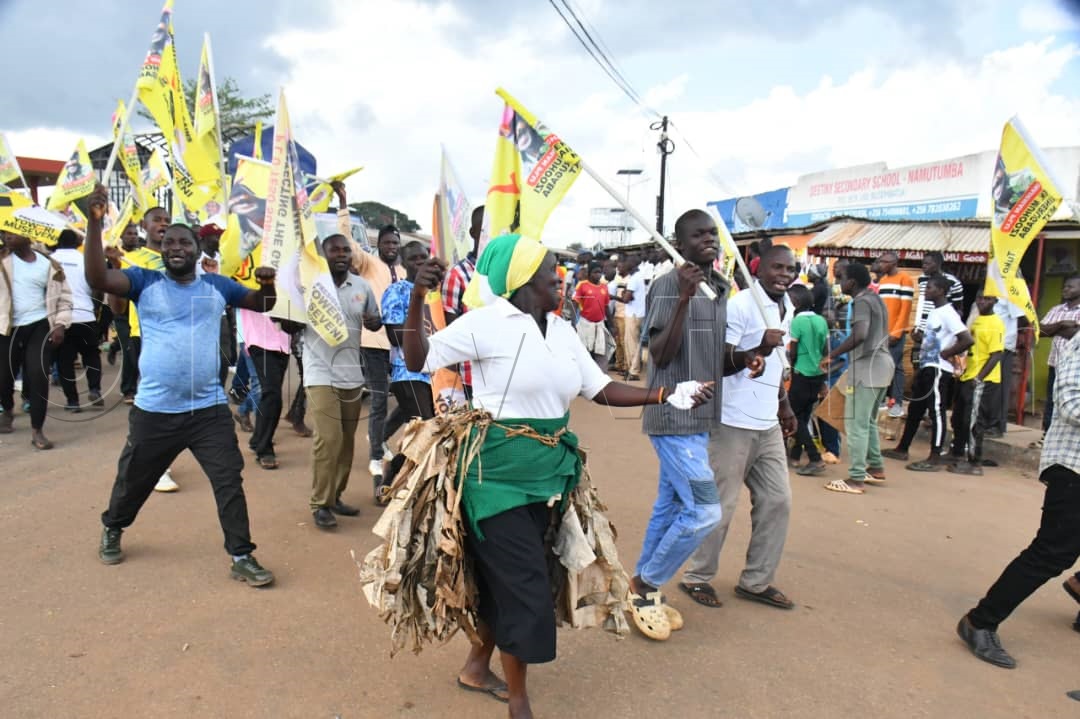 The rhythmic beat of drums filled the air as residents spontaneously broke into traditional Kisoga dances, celebrating the moment as they waited for their presidential candidate.