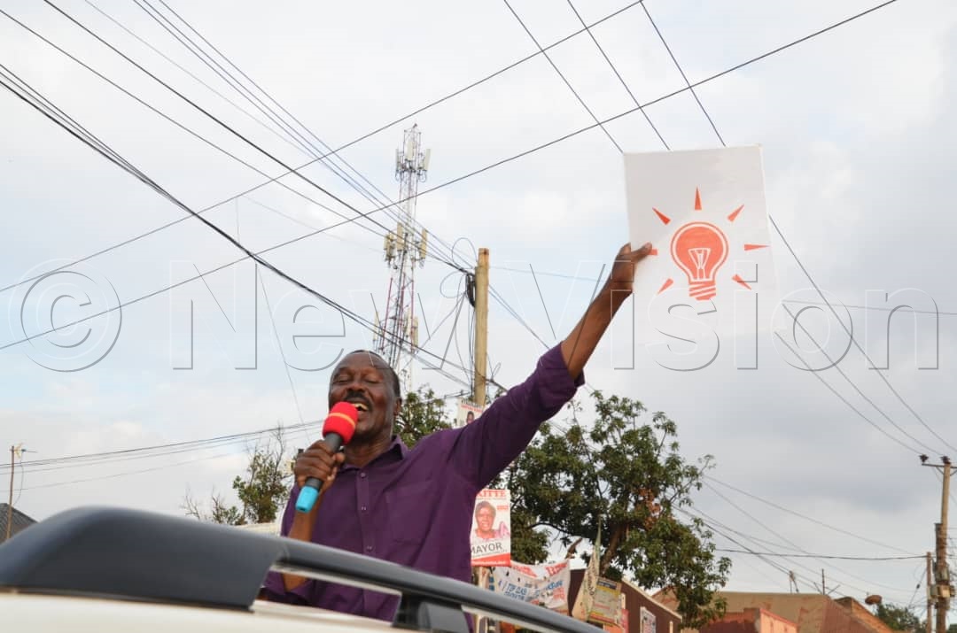 Maj. Gen. (Rtd) Mugisha Muntu addressing voters in Wakiso.