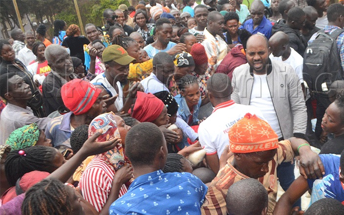 Ekikonde n'okusikangana ebitogo bibuutikidde ekitebe Kya divizoni ye Nansana abantu abasengulwa mu bitundu bya Lubigi bwebabadde balwanira emmere omuli akawunga n'ebijanjaalo ebibaweereddwa ssentebe wa divizoni eno.
