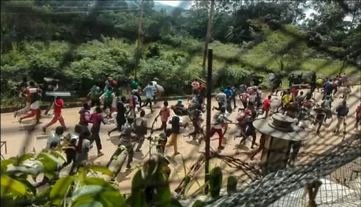 This frame grab taken from video footage on Monday shows crowds fleeing with items after they stormed a United Nations compound (AFP Photo)