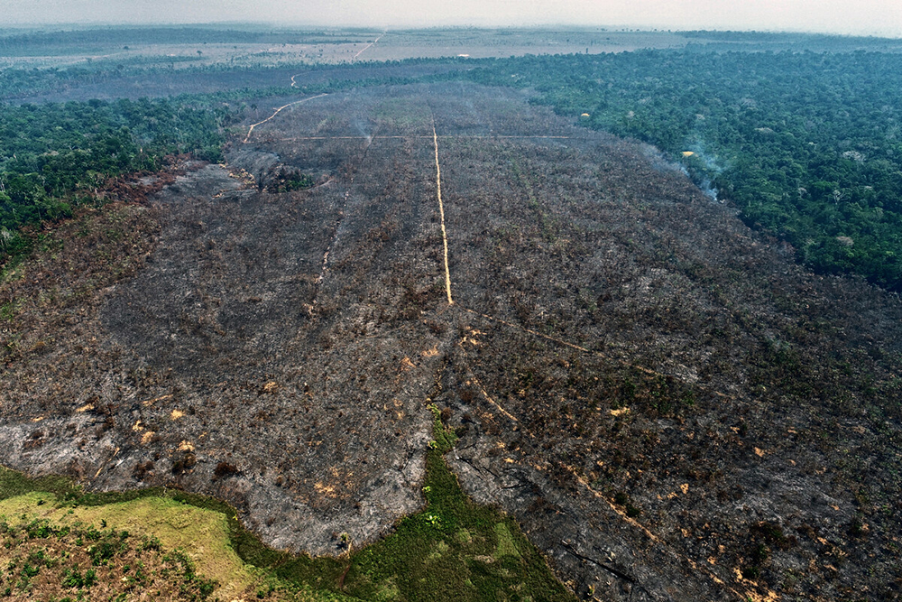 An aerial view of part of the 95,000-hectare Rio Preto-Jacunda State Nature Reserve, in Rondonia State, Brazil, after it was burned down, on September 6, 2023. (Photo by RIOTERRA / AFP)