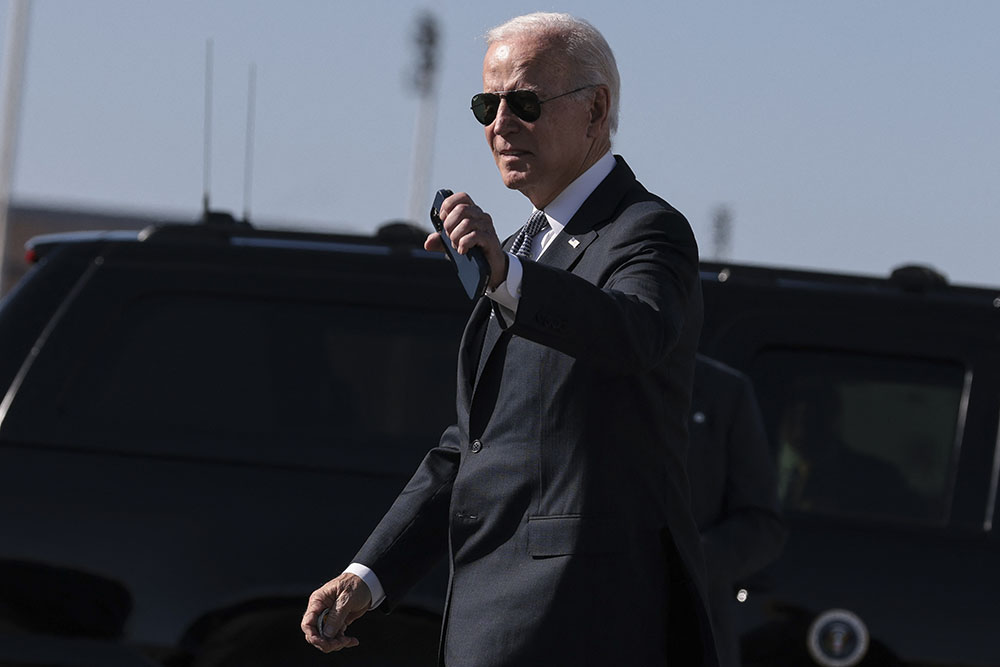 US President Joe Biden arrives at Dover Air Force Base in Dover, Delaware, October 21, 2022. - Biden is speaking about student debt relief at Delaware State University in Dover. (AFP/FILE)
