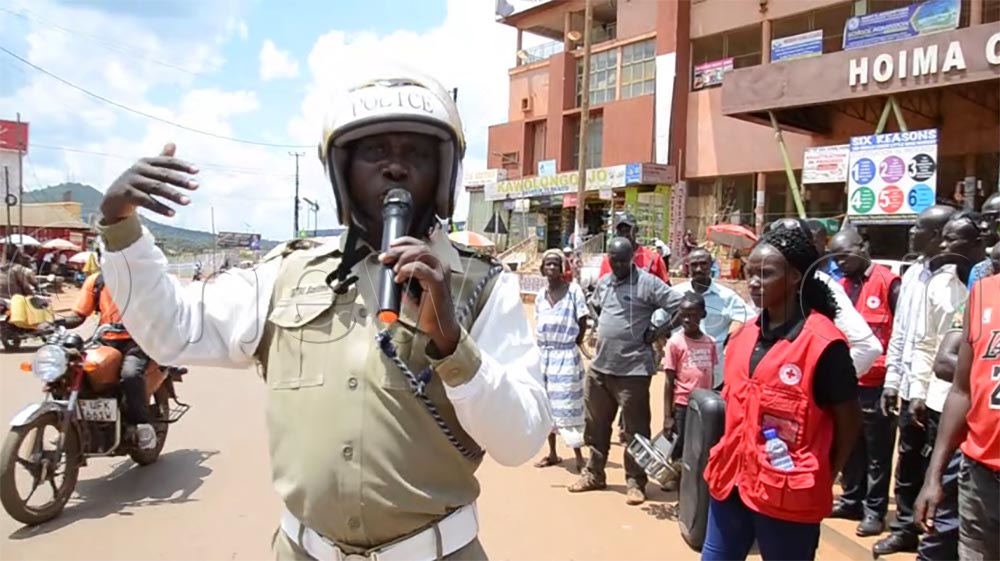 Cpl Charles Basiima, the head of traffic operations at Hoima Central Police Station, demonstrated to the cyclists how zebra crossings are normally used.