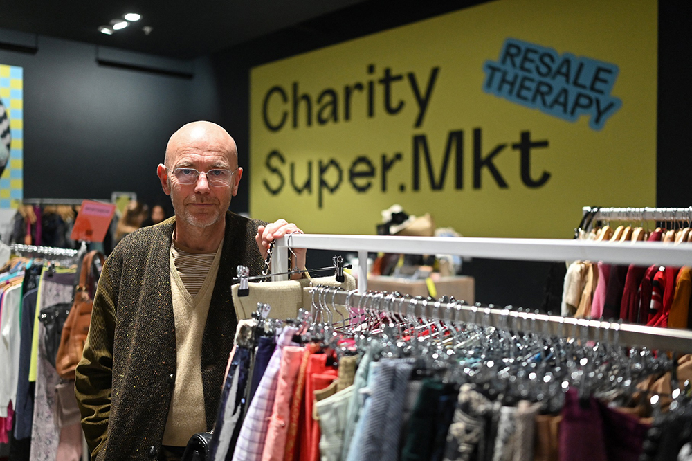 English designer Wayne Hemingway poses for a portrait inside Charity Super.Mkt at Brent Cross Shopping centre in north London on, December 17, 2024. (AFP photo)