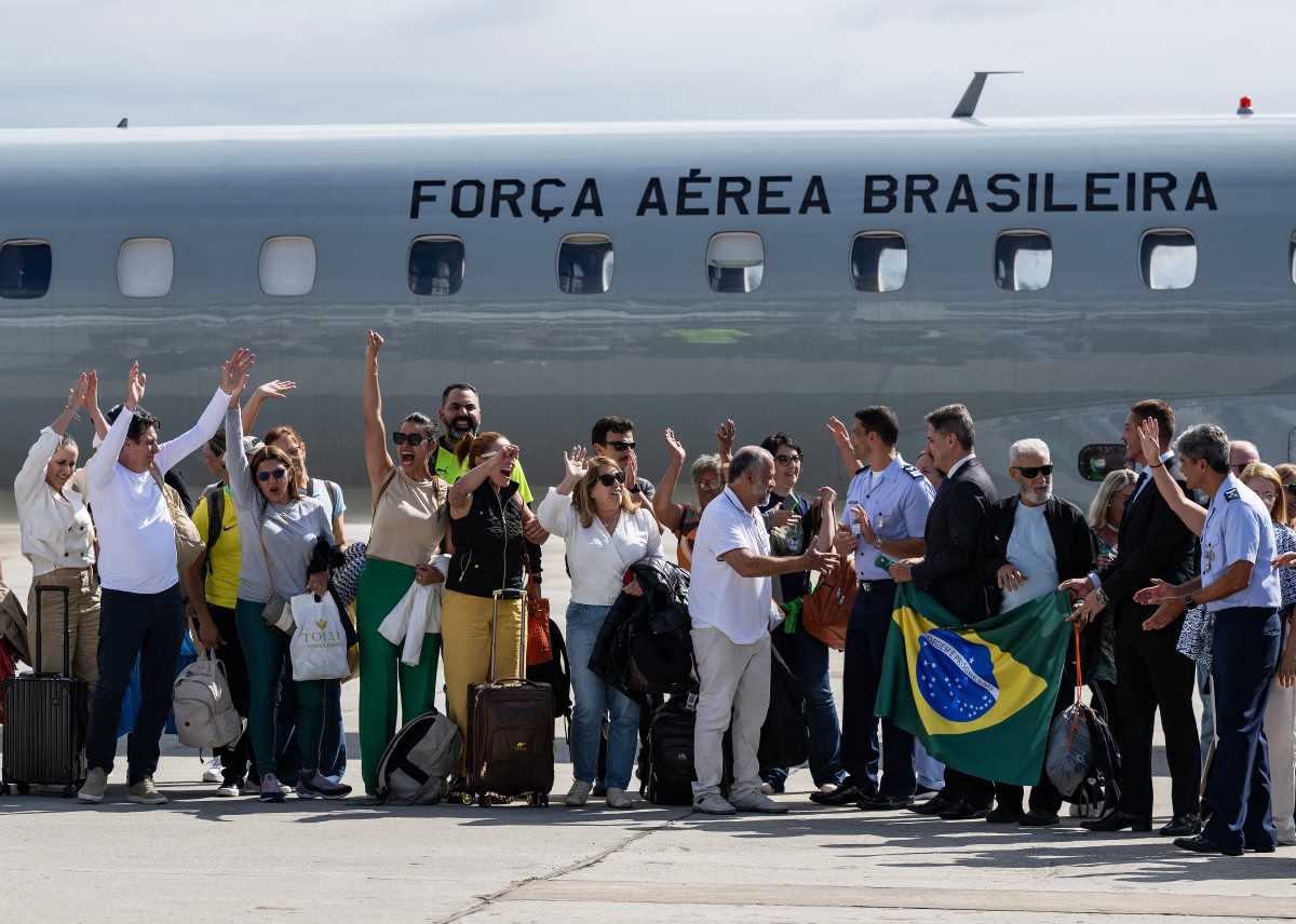 Brazilian citizens fleeing the conflict between Israel and Hamas arrive at the Brazilian military airbase Galeo in Rio de Janeiro, Brazil, on October 11, 2023. (Photo by CARL DE SOUZA / AFP)