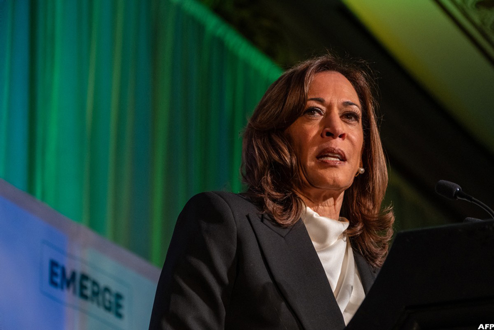 Former US Vice President Kamala Harris speaks at the Emerge 20th Anniversary Gala in San Francisco, California, on April 30, 2025. (AFP)