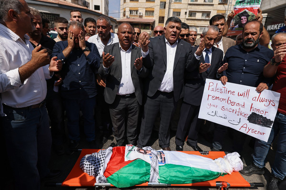 Hundreds in West Bank mourn slain US-Turkish activist