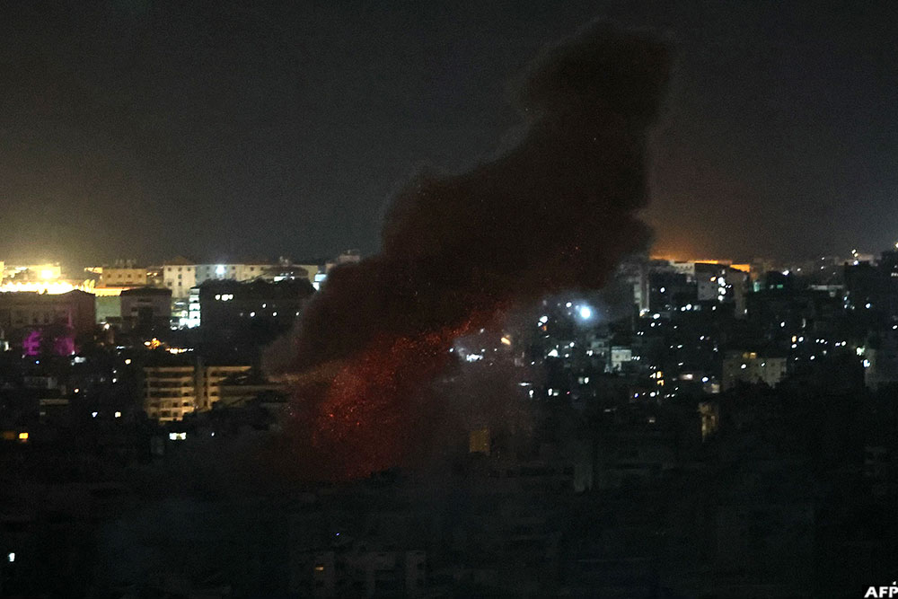 Smoke rises from the site of an Israeli airstrike that targeted an area in the southern suburbs of the Lebanese capital Beirut early on March 21, 2026. (AFP)