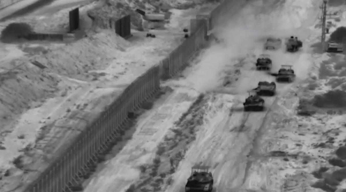 This screen grab taken from handout footage released by the Israeli army on October 26, 2023, shows a "targeted raid" in northern Gaza with tanks and infantry.AFP