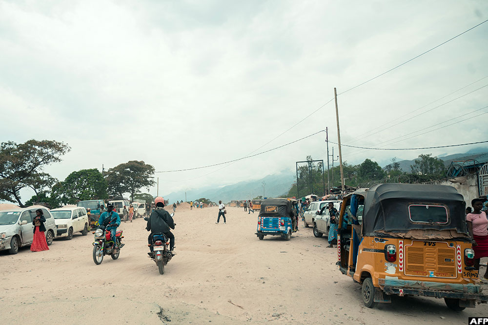 Commuters and pedestrians are seen along a road in Uvira on December 9, 2025. (AFP)