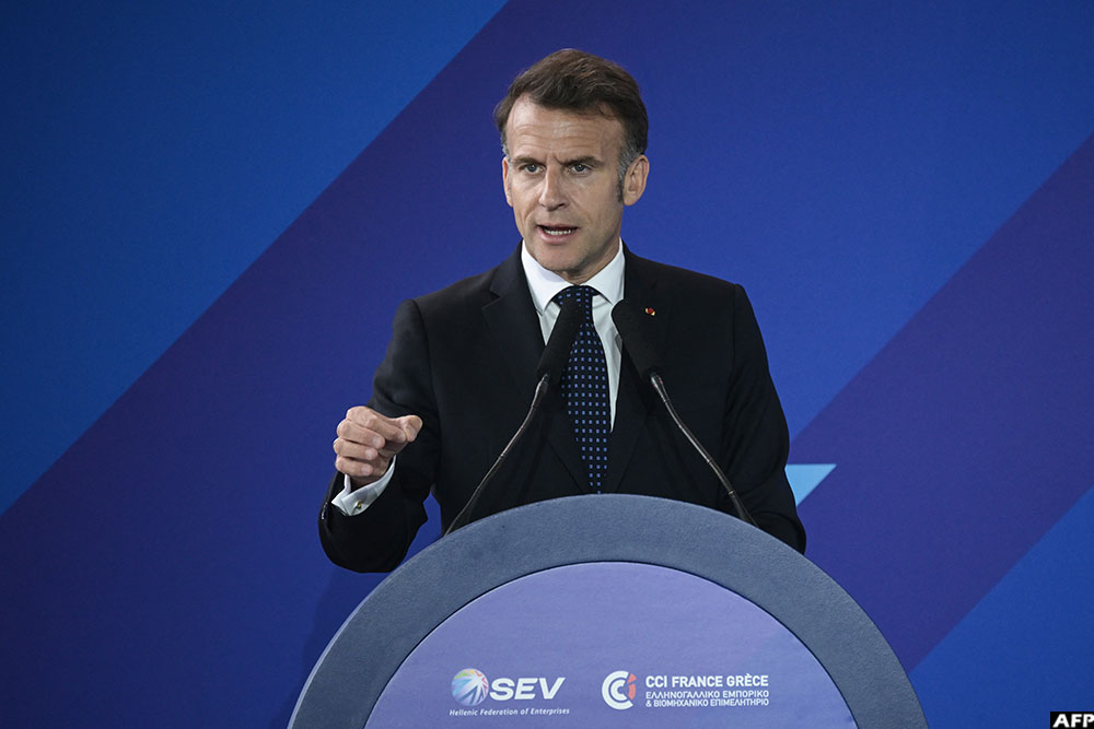 ATHENS - French President Emmanuel Macron said Saturday he considered the EU's common defence clause "stronger" than the one binding NATO together.