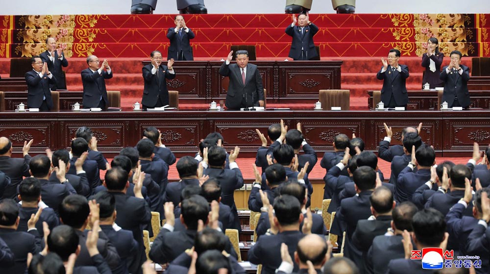 This picture taken on March 22, 2026 and released by North Korea's official Korean Central News Agency (KCNA) on March 23, 2026 shows the First Session of the 15th Supreme People's Assembly at Mansudae Assembly Hall in Pyongyang. North Korea's rubber-stamp legislature has re-elected Kim Jong Un as president of state affairs, state media reported on March 23. (Credit: AFP)