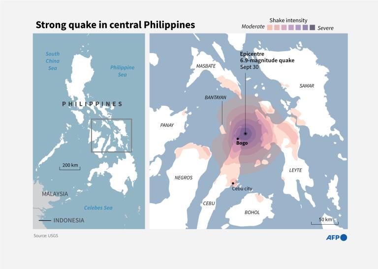 They are survivors of the shallow magnitude 6.9 quake that struck late on Tuesday off Cebu island's north near Bogo, a city of 90,000 people, according to the US Geological Survey.