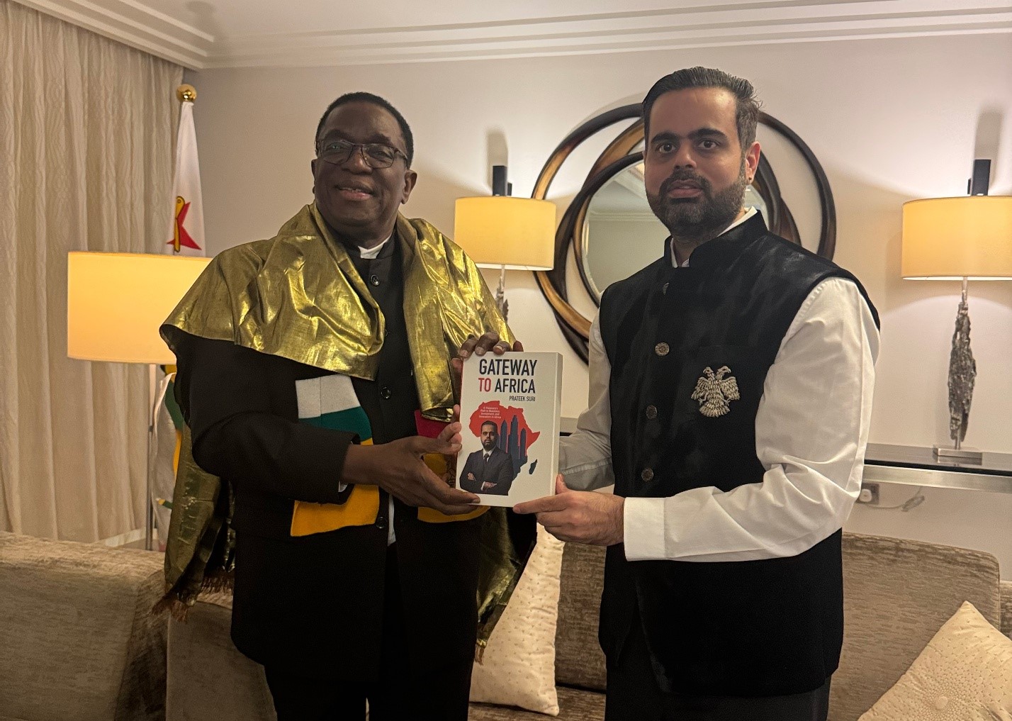 In a landmark leadership interaction, Prateek Suri—widely recognised as the richest Indian based in Africa and Africa’s youngest billionaire formally presented his memoir Gateway to Africa to Zimbabwean President Emmerson Mnangagwa with hand note special note. The meeting reflected the growing engagement between visionary private-sector leaders and African governments in advancing sustainable development and cross-border collaboration.