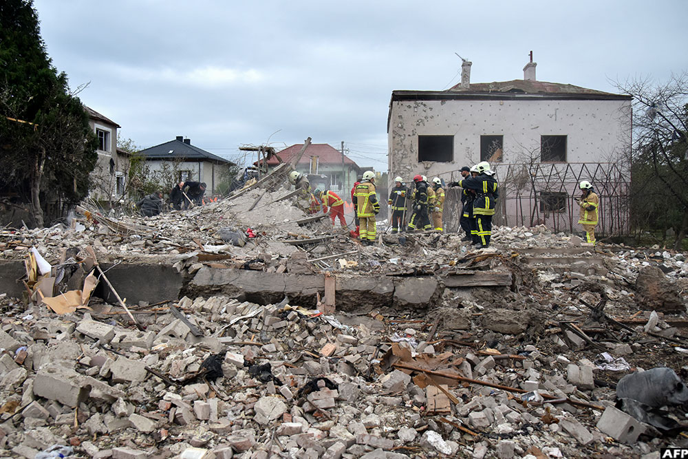 KYIV - Russian strikes Sunday on Ukraine killed five people and badly damaged energy infrastructure, temporarily severing power supplies to tens of thousands and prompting neighbouring Poland put ground defence on high alert.