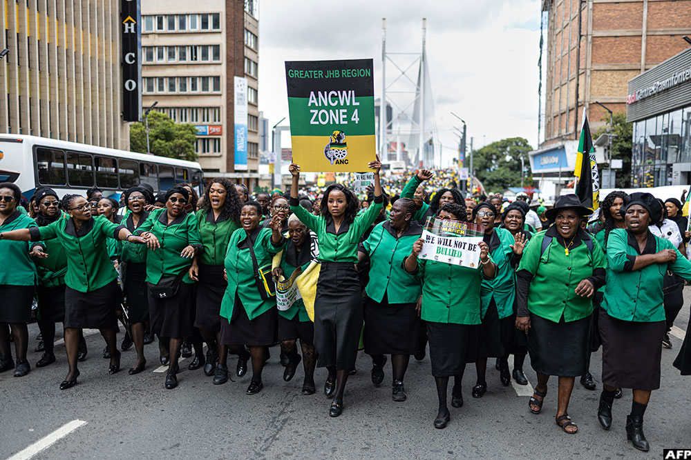 Crowds dressed in green and yellow – the ANC's colours – flooded the wide avenues lined with skyscrapers in the centre of the country’s economic capital. Another march was organised later that day in Cape Town.