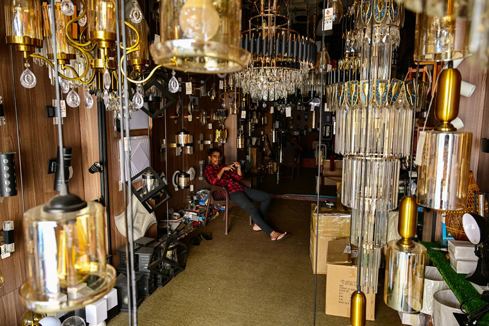 A man selling lamps waits for customers at a dimmed shop during a nationwide power outage in Galle on February 9, 2025. An intruding monkey at a Sri Lankan electrical grid sub-station caused a general island-wide blackout on February 9, government officials said. (Photos by AFP)