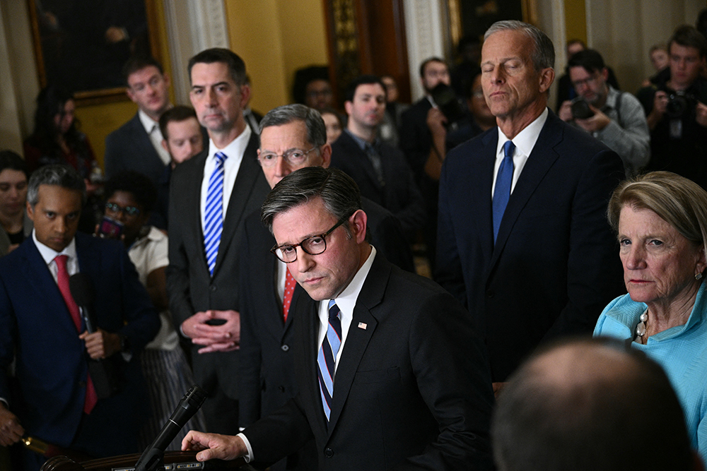 Rising tensions between the two parties have been on full display this week, with Johnson and Democratic senators clashing over the shutdown in front of the gathered press.