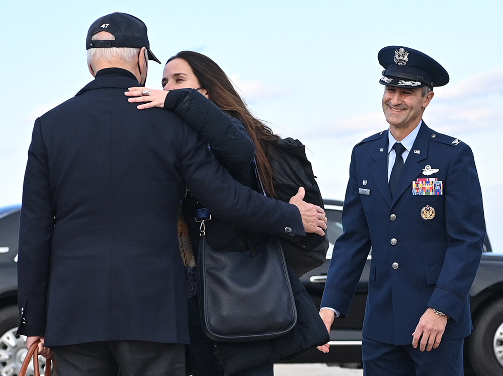 US President Joe Biden hugs his daughter Ashley Biden upon arrival at Joint Base Andrews, Maryland on November 28, 2021. AFP photo