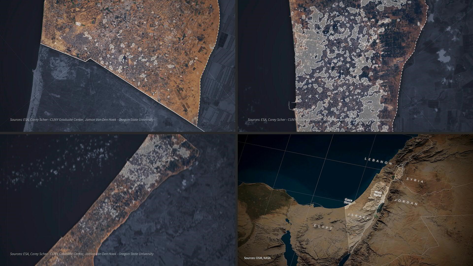 Animated map of the Gaza Strip showing areas likely damaged between October 7 and November 5, based on analysis of satellite images.
